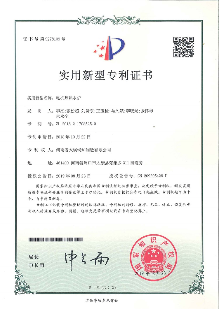 • 電機(jī)熱熱水爐專利