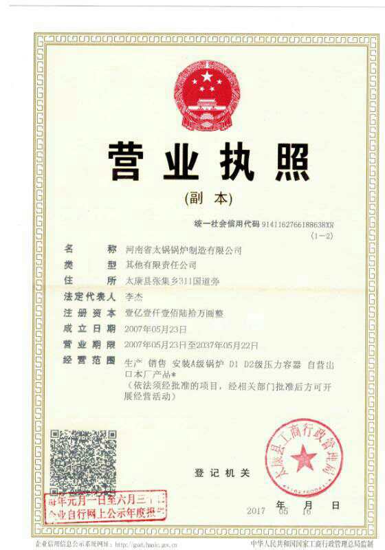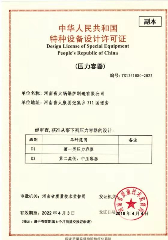 A級(jí)鍋爐制造許可證